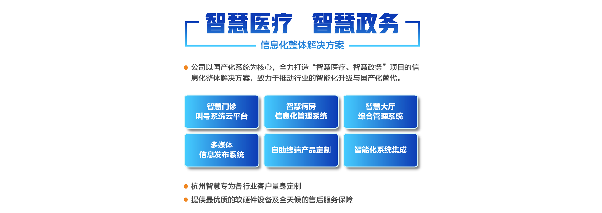 杭州智慧科技有限公司初創(chuàng)于2003年,總部位于重要的電子商務(wù)中心中國杭州公司主營業(yè)務(wù)有:智慧分診叫號系統(tǒng)、智慧病房醫(yī)護對講系統(tǒng)、智慧大廳綜合管理系統(tǒng)、智慧政務(wù)管理系統(tǒng)、智慧多媒體信息發(fā)布系統(tǒng)、導(dǎo)診系統(tǒng)及各自助終端產(chǎn)品定制。專為各行業(yè)客戶量身定制。公司已有20余年行業(yè)經(jīng)驗沉淀積累,擁有優(yōu)秀的產(chǎn)品外觀設(shè)計師和各類中高級專業(yè)技術(shù)工程師,確保所研發(fā)的產(chǎn)品具有行業(yè)領(lǐng)先的外觀及可靠的技術(shù)性能。并擁有權(quán)威部門頒發(fā)的各類知識產(chǎn)權(quán)及專利證書,30多項資質(zhì)證書、800多個合作伙伴、2000多個項目成功案例經(jīng)驗。 智慧產(chǎn)品已遍及全國各醫(yī)療、政務(wù)、金融、通訊、公安、工商、稅務(wù)等行業(yè),形成以“立足杭州、輻射長三角、拓展全國”的戰(zhàn)略發(fā)展格局,產(chǎn)品經(jīng)過歷年不斷創(chuàng)新,形成專業(yè)化、平臺化,致力于成為智慧產(chǎn)品的領(lǐng)軍企業(yè)。 公司建立了完善的技術(shù)培訓(xùn)及售后服務(wù)中心,并設(shè)24小時熱線咨詢電話解答用戶反饋的問題。同時應(yīng)客戶要求定期派技術(shù)人員到 全國各地進行技術(shù)指導(dǎo)輔助用戶正確使用智慧產(chǎn)品并能獨立安裝、調(diào)試、日常維護等工作。提供最優(yōu)質(zhì)的設(shè)備及全天候的售后服務(wù)保障,智慧永恒不變的服務(wù)宗旨——致力于客戶的滿意與成功!...